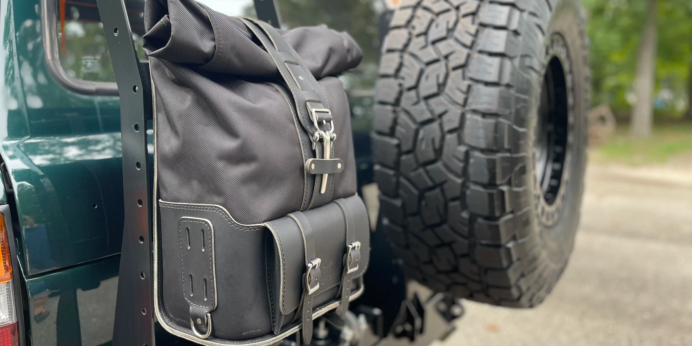 Motorcycles (Sissy Bar or Side Bracket), Jeeps (Spare Tire), & Overland Rigs (Ladders/Racks).